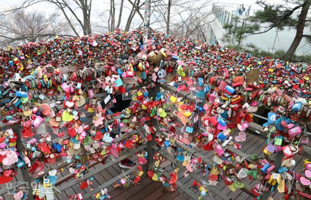 Di puncak Namsan,bisa lihat banyak kunci. Kunci-kunci ini sebelumnya sangat populer sebagai simbol cinta, tetapi akhir-akhir ini, jumlah gembok menjadi sangat banyak sehingga kelihatannya jelek apalagi sangat berat, sehingga direncanakan akan dihancurkan.